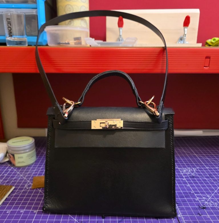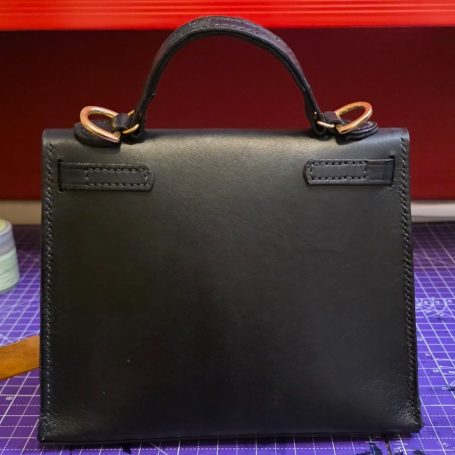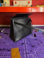 Made this little piece for the better half, loosely based on a handbag she'd seen and loved. 2mm leather dyed a rich black with brass hardware